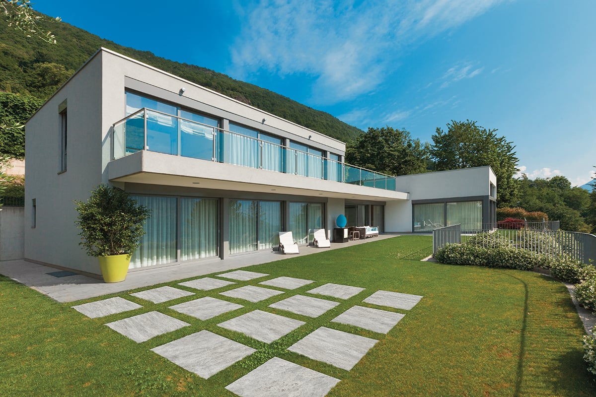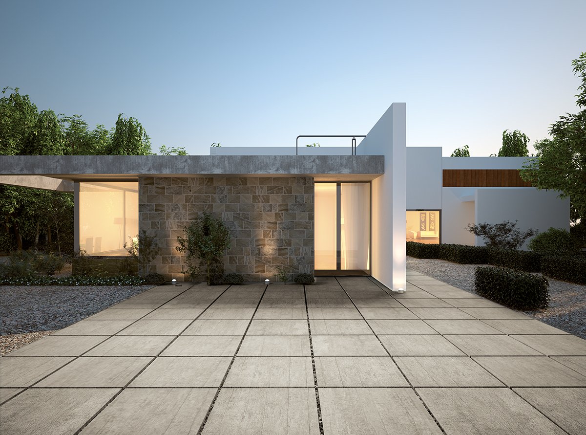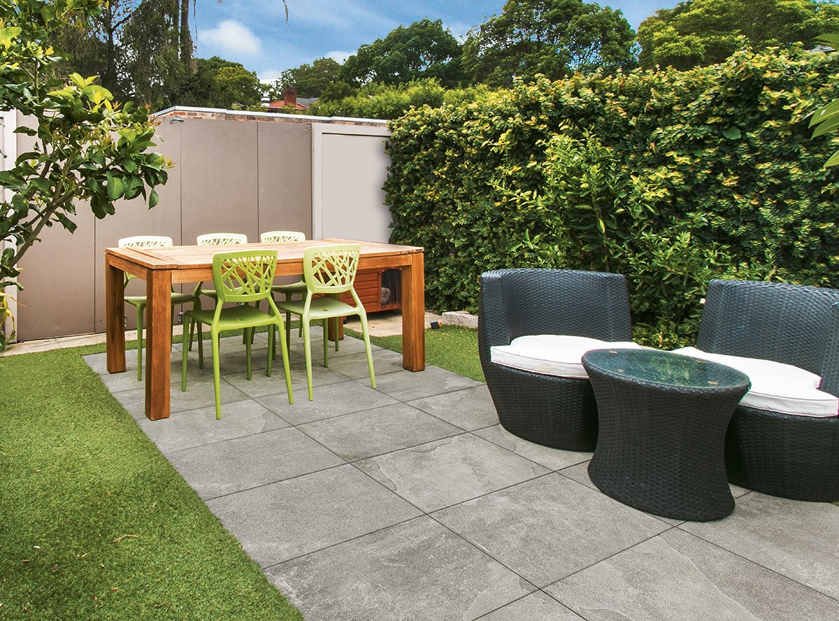 Die Platten lassen sich auf verschiedene Arten verlegen. Sie können direkt in Splitt, mit kleinen Fugen verlegt werden, oder auf einen bestehenden Betonbelag geklebt werden, mit oder ohne Fugen. Die Feinsteinzeugplatten eignen sich ebenso für Wege und Gartensitzplätze.