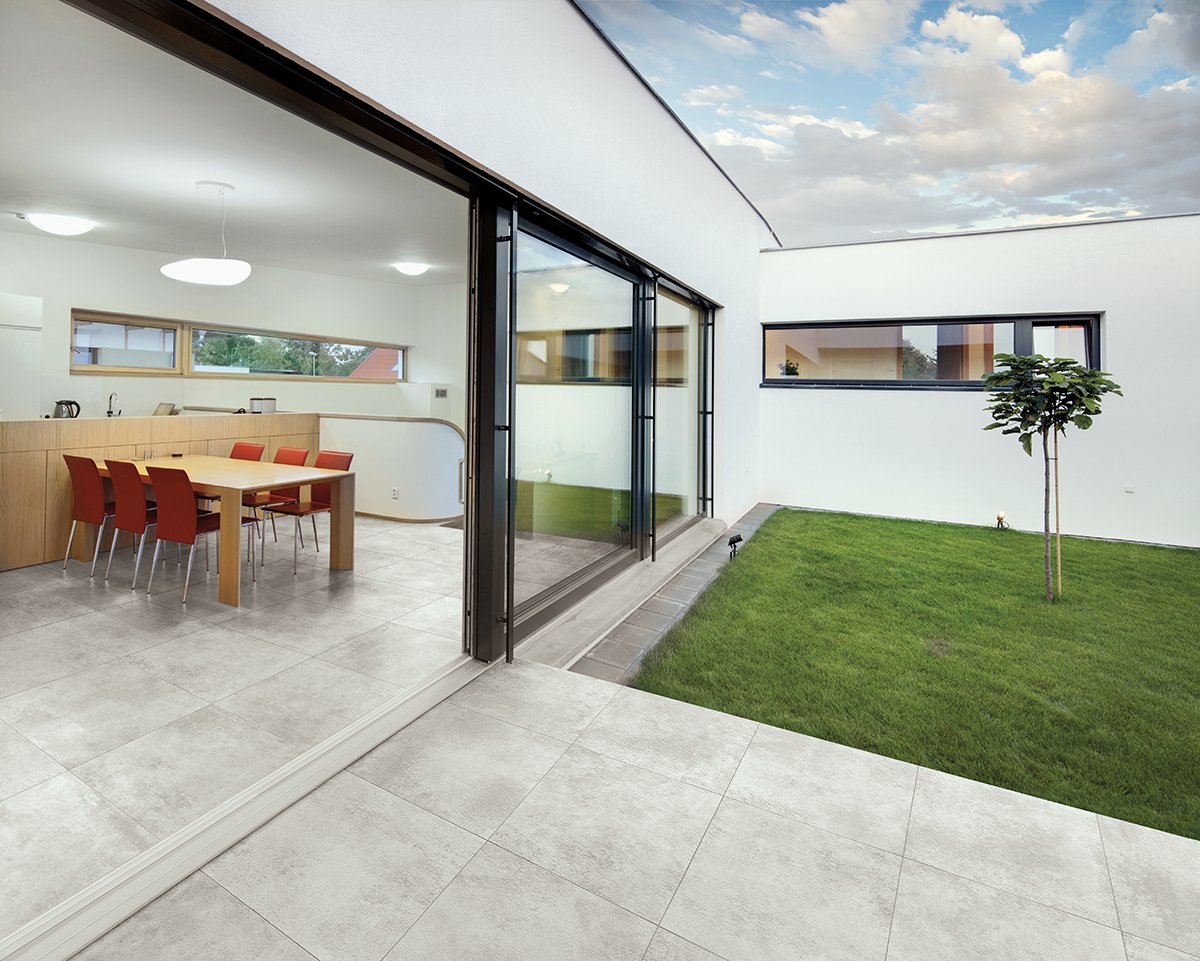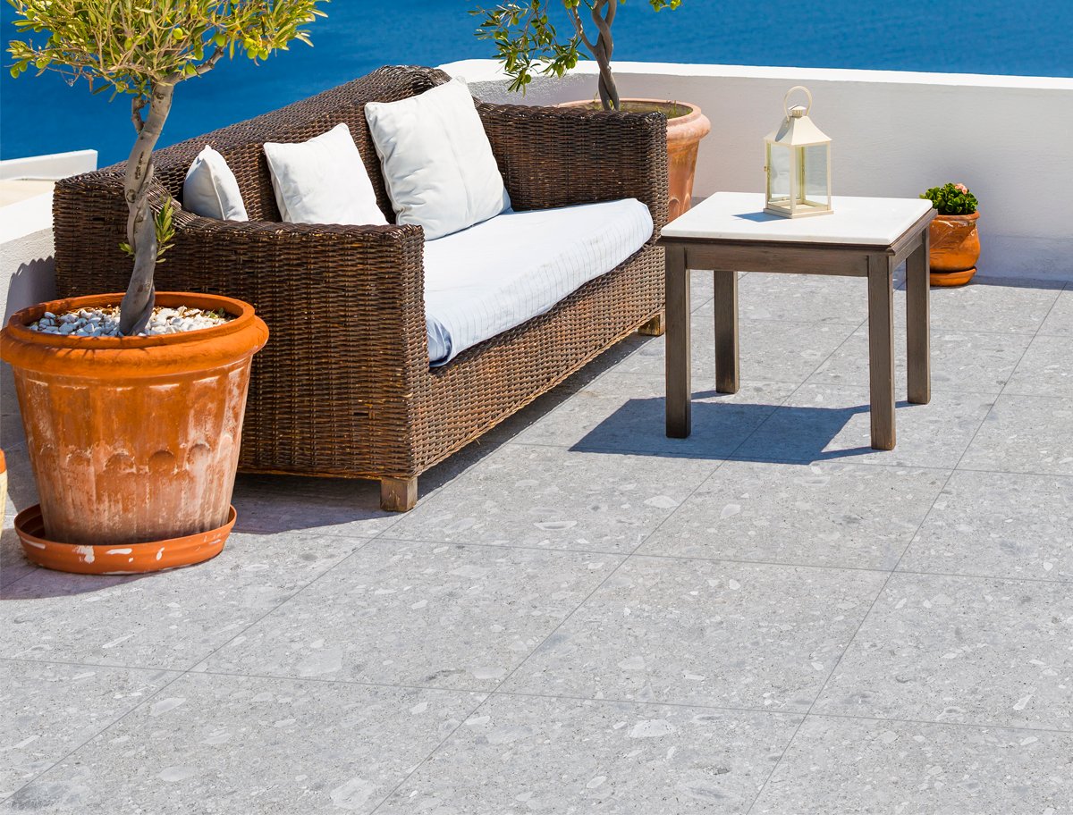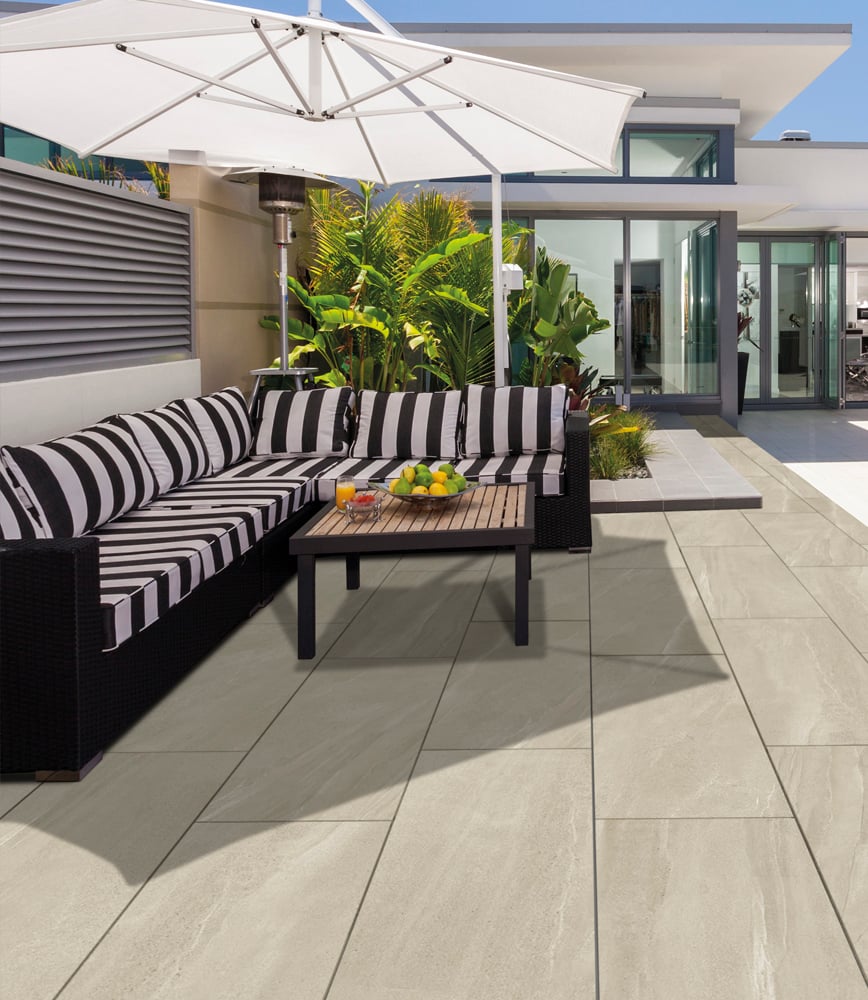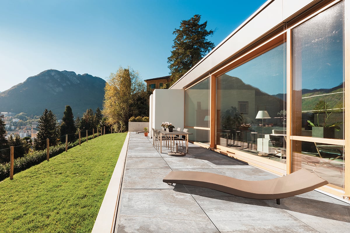 Mit den neuen Feinsteinzeugplatten wird die Terrasse oder der Gartensitzplatz definitiv zum erweiterten Wohnraum. Einige Platten sind sowohl für den Innenbereich wie auch für den Aussenbereich geeignet. So lässt sich ein einheitlicher Bodenbelag gestalten.