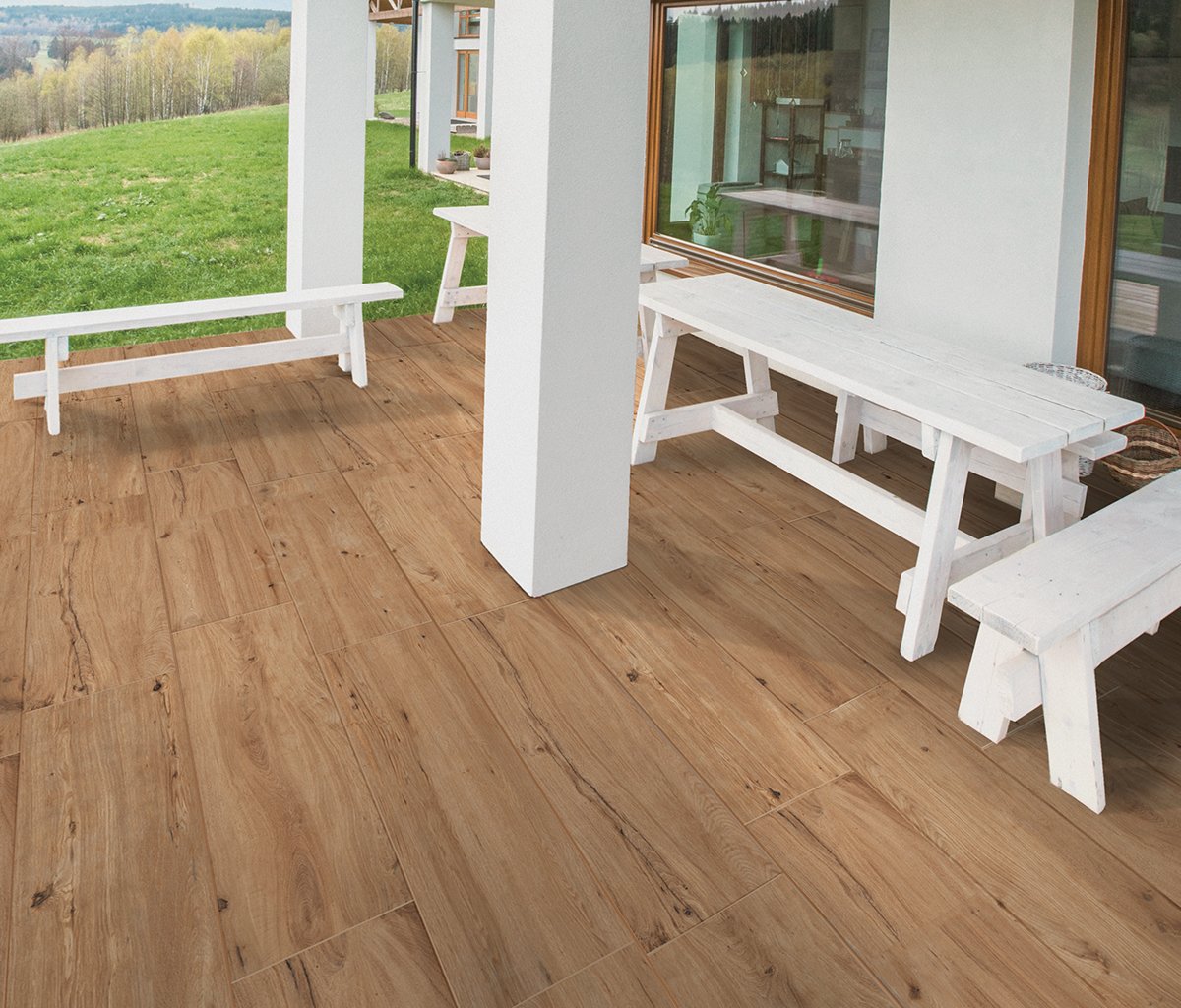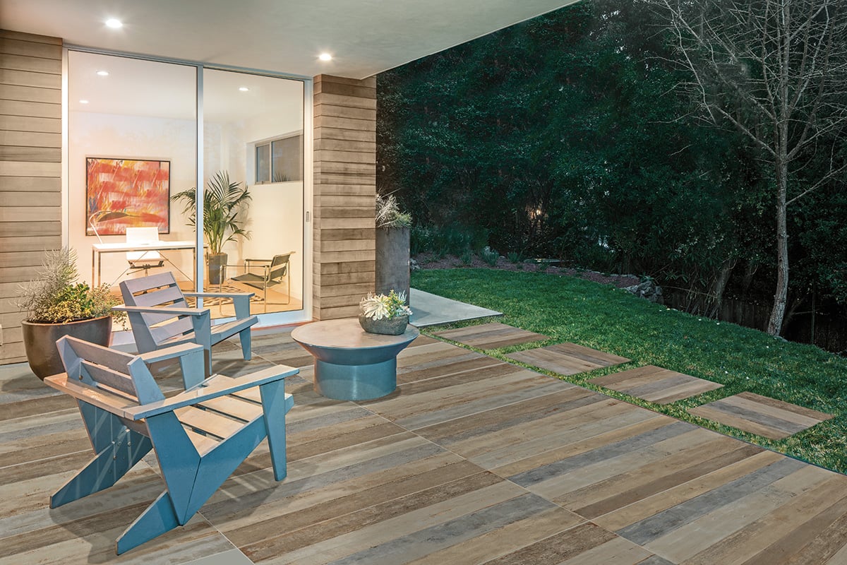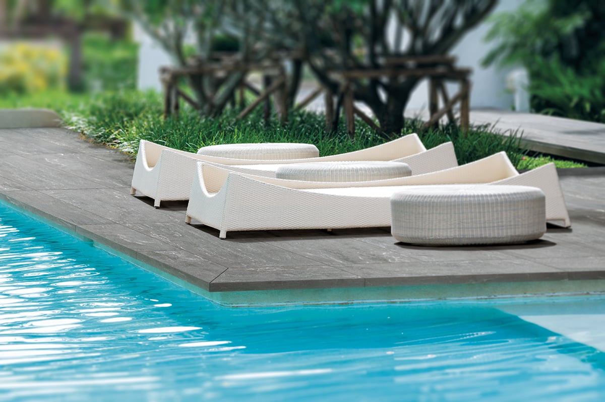 Mit den neuen Feinsteinzeugplatten wird die Terrasse oder der Gartensitzplatz definitiv zum erweiterten Wohnraum. Einige Platten sind sowohl für den Innenbereich wie auch für den Aussenbereich geeignet. So lässt sich ein einheitlicher Bodenbelag gestalten.