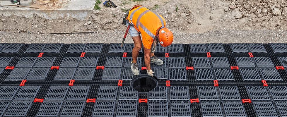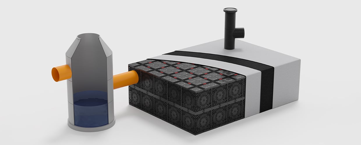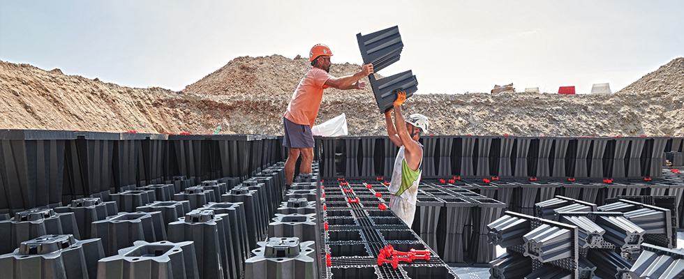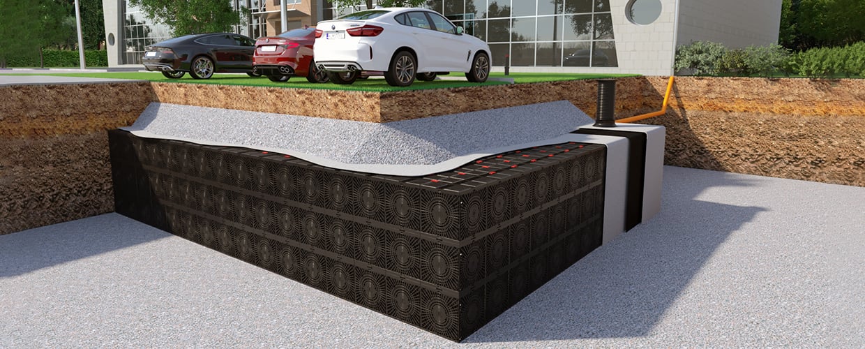 Das Aquabox-System wurde für eine effiziente Regenwasserrückhaltung bei Sturm entwickelt und eignet sich für verschiedene Anwendungen wie Infiltrations-, Rückhalte- oder Dämpfungssysteme. Es wurde für eine schnelle Installation konzipiert, ist vollständig überprüfbar und sowohl für Landschafts- als auch für Verkehrsbereiche geeignet. Dabei wurden die Standardparameter des SuDS (Sustainable Drainage System) eingehalten.
