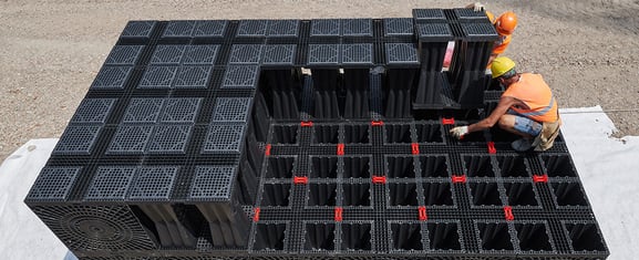 Aquabox ist ein unterirdisches Kunststoffmodul, in dem Wasser gesammelt und gespeichert wird. Ziel dieses Systems ist es, das Regenwasser vorübergehend zu sammeln und zeitverzögert in die Abwasserinfrastruktur abzugeben, um Überschwemmungen in städtischen Gebieten zu verhindern.